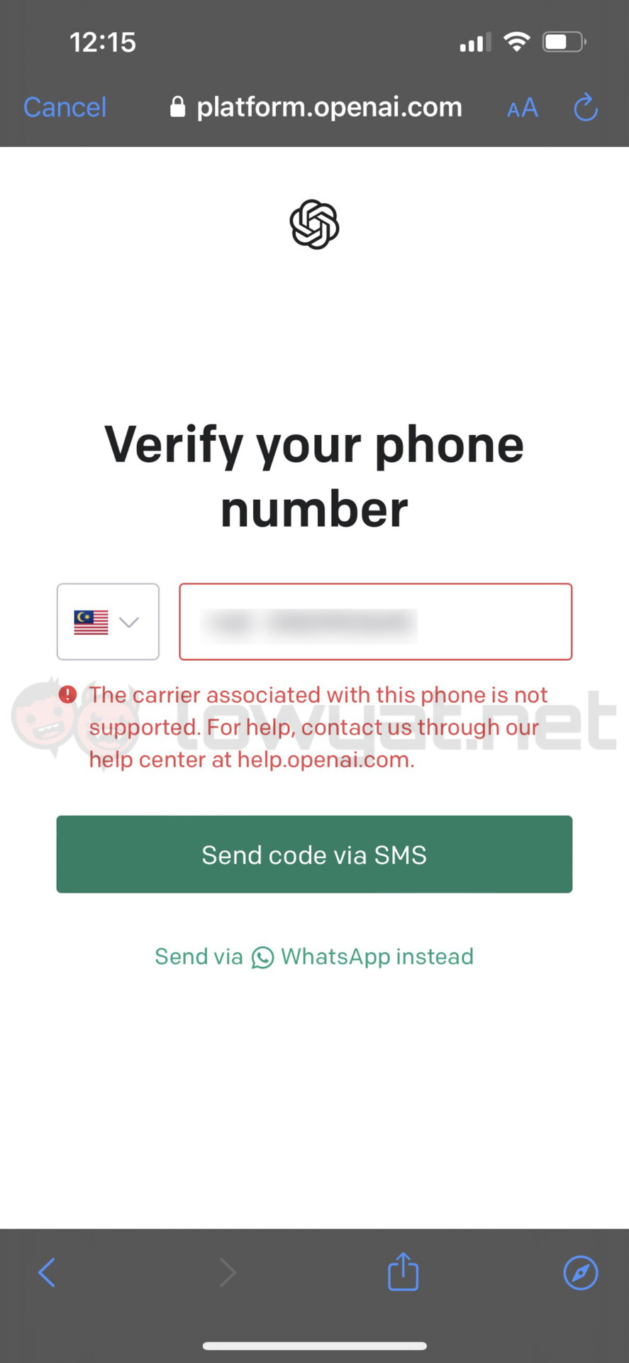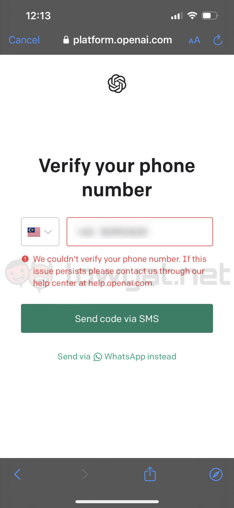 As you may have guessed, the next step is where OpenAI asks for your phone number. This is required, as the next step involves completing the registration process by inputting a code sent via SMS or WhatsApp. For this purpose, contact details associated with landlines, VoIP providers or Google Voice are unsupported due to security reasons, as noted by the company in its help page. Being a mobile telecommunications service provider, U Mobile is neither of these so we doubt this is the cause of the issue.