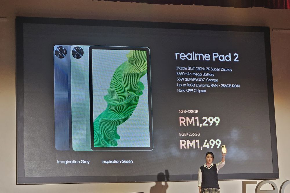 For the realme Pad 2, these will be available for RM299. As it turns out, the Pad 2 comes in two configurations, which are 6GB + 128GB and 8GB and 256GB. These are priced at RM1,299 and RM1,499, respectively. Like the phone, these will be available starting tomorrow.