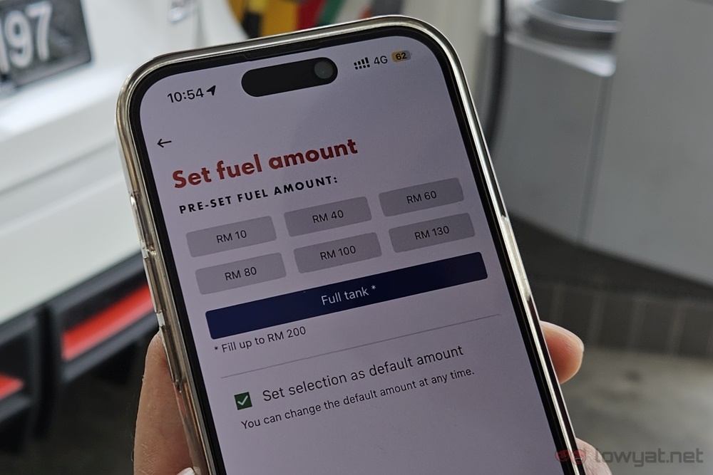 Once that is one, the process of paying for your fuel starts with you simply driving up to a Shell station, and driving to a pump. With location permissions granted, the app will identify which station you are at, and from there, you key in the pump number. From there, you pick one of the six preset fuel amount based on its price. There’s also a full tank option, which reserve up to RM200 for your fuel payment.