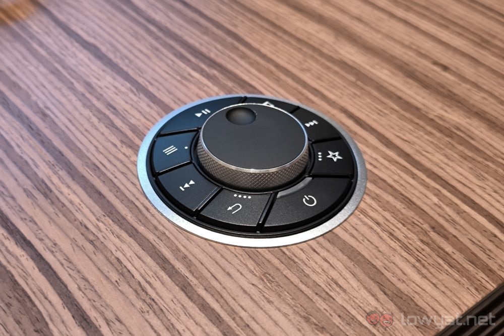 The entire Ruark R410 package measures in at 133 x 560 x 290 mm (H x W x D), and weighs 9.5kg. There’s also a 4-inch screen in front, but the actual navigation is done via a dial on top, as well as a Bluetooth remote.